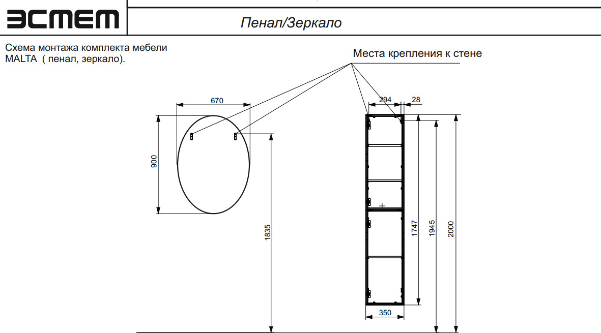 - Пенал подвесной Malta левосторонний