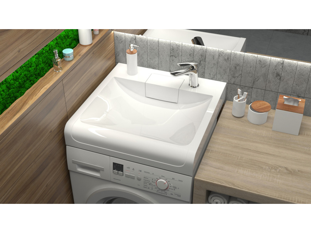 Материал: Материал-литьевой мрамор;раковина устанавливается на кронштейны над стиральной машиной(не допустимо монтировать на столешницу стиральной машины).