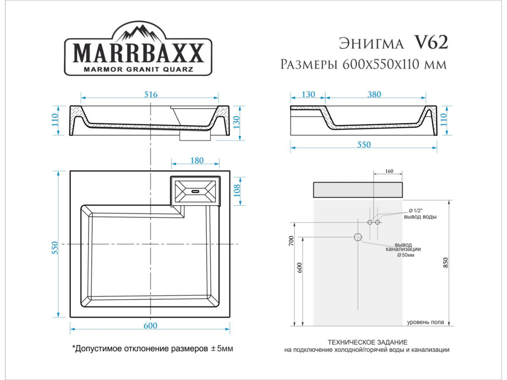 Материал: Материал-литьевой мрамор;раковина устанавливается на кронштейны над стиральной машиной(не допустимо монтировать на столешницу стиральной машины).