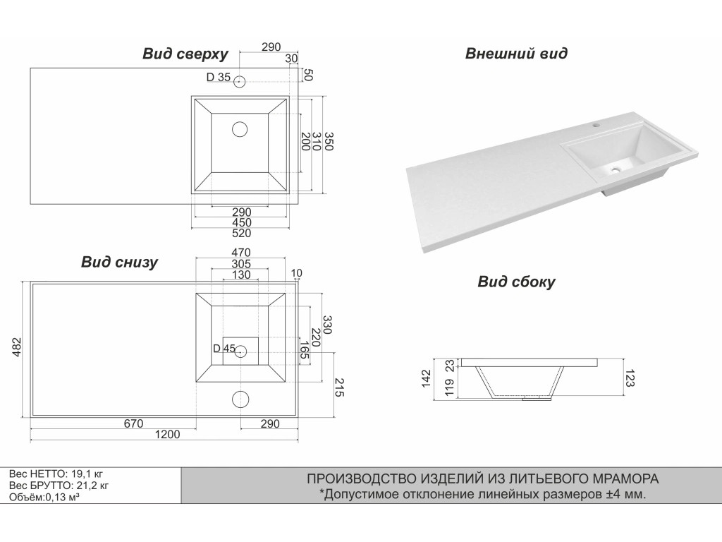 - Изготовлена из литьевого мрамора
