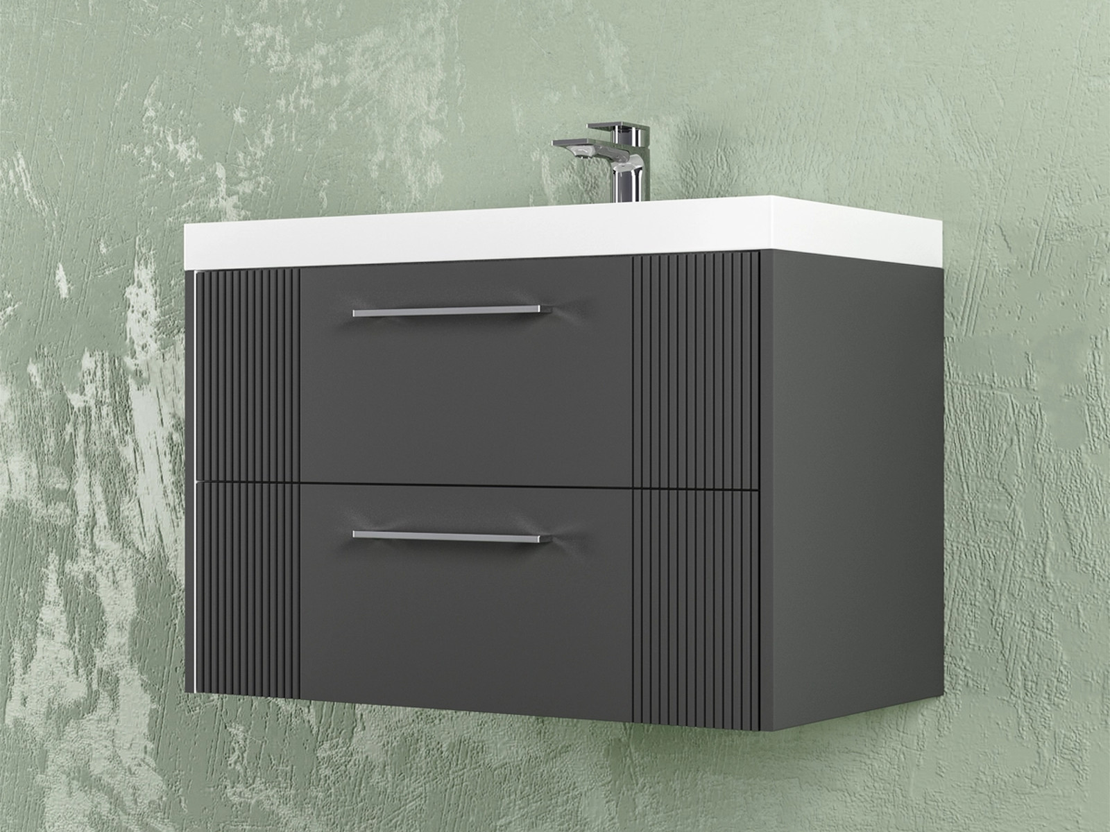 Тумба Альба 60 подвесная 2 ящика раковина Океан 60 антрацит