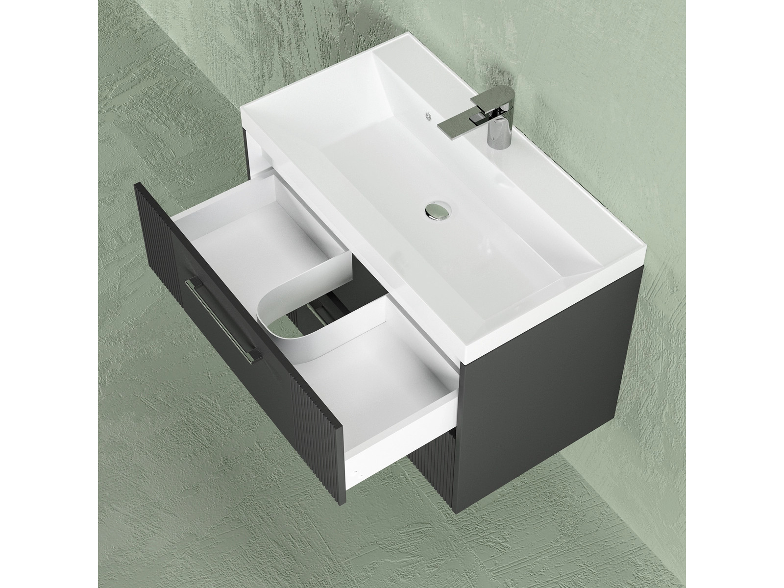 - Тумба Альба 60 подвесная 2 ящика раковина Океан 60 антрацит
