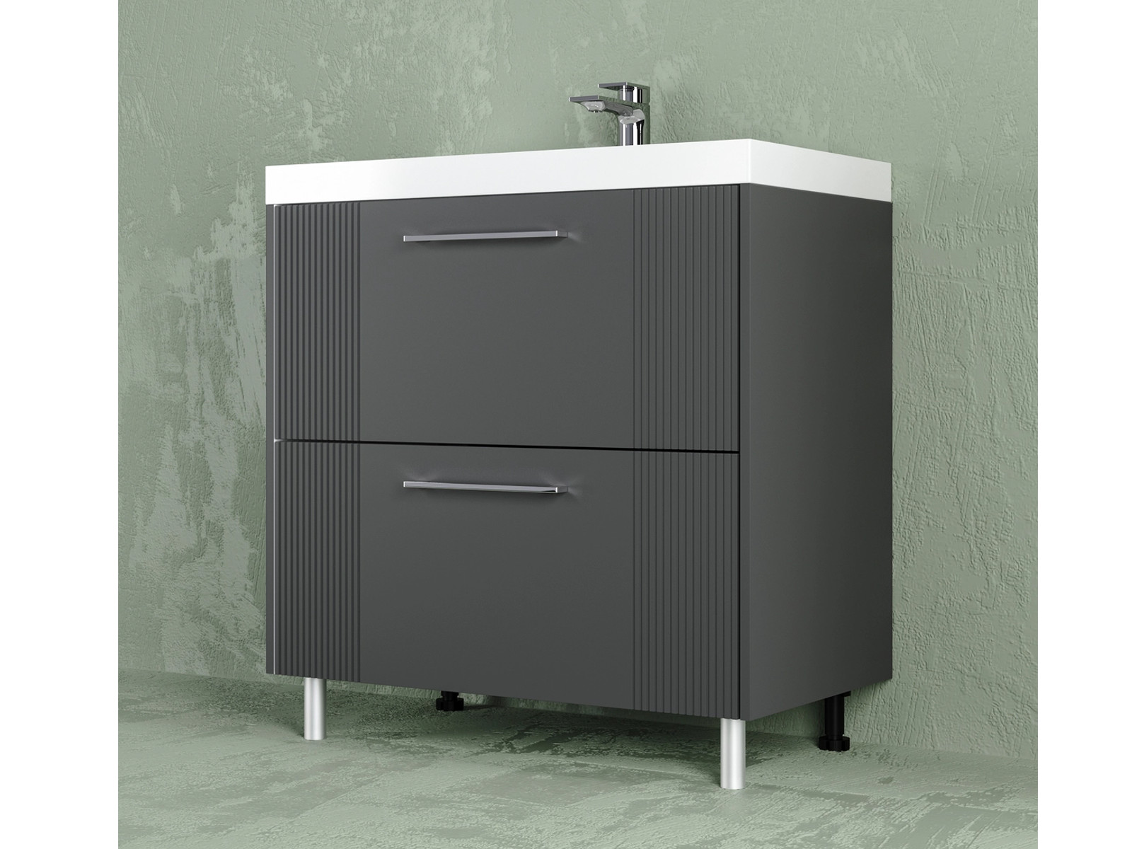 - Тумба Альба 80 напольная 2 ящика Слим 80 антрацит