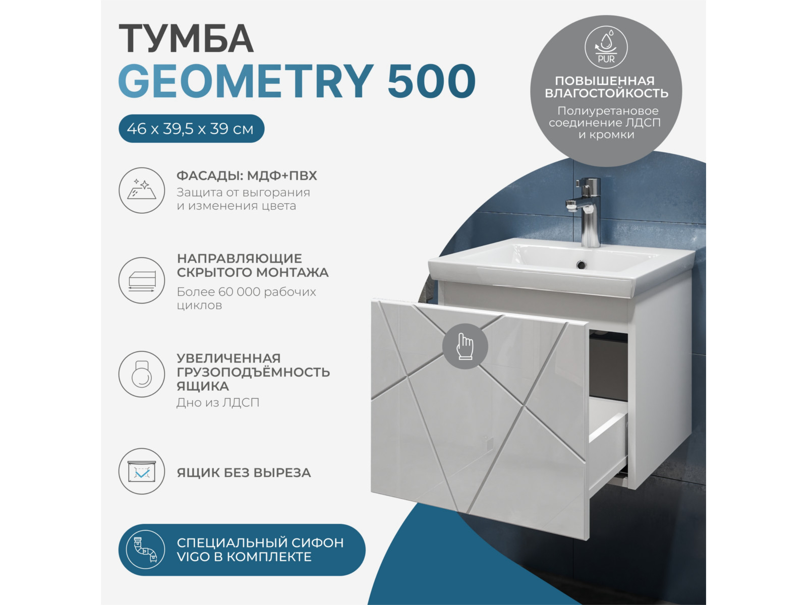 - Тумба Geometry 500-0-1 Como навесная белый