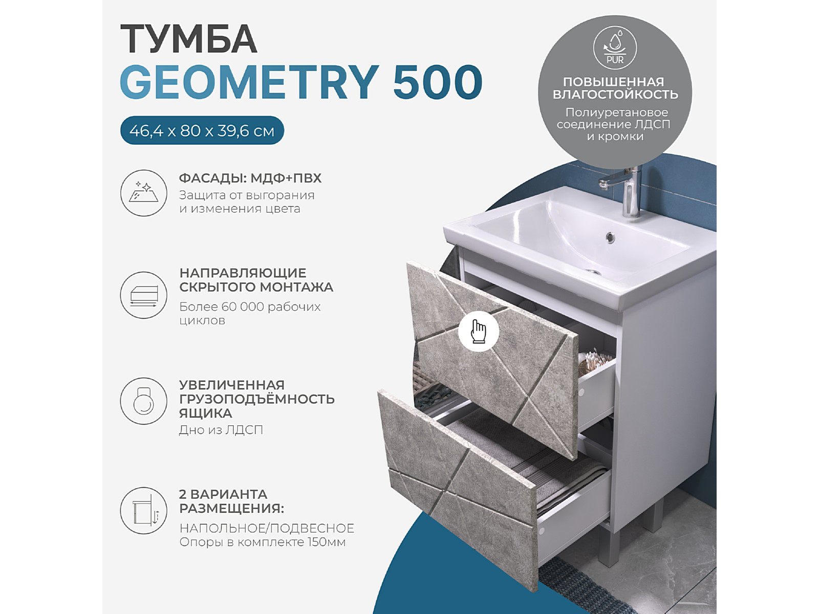 - Тумбы Geometry 500-0-2 (под ум Como) бетон