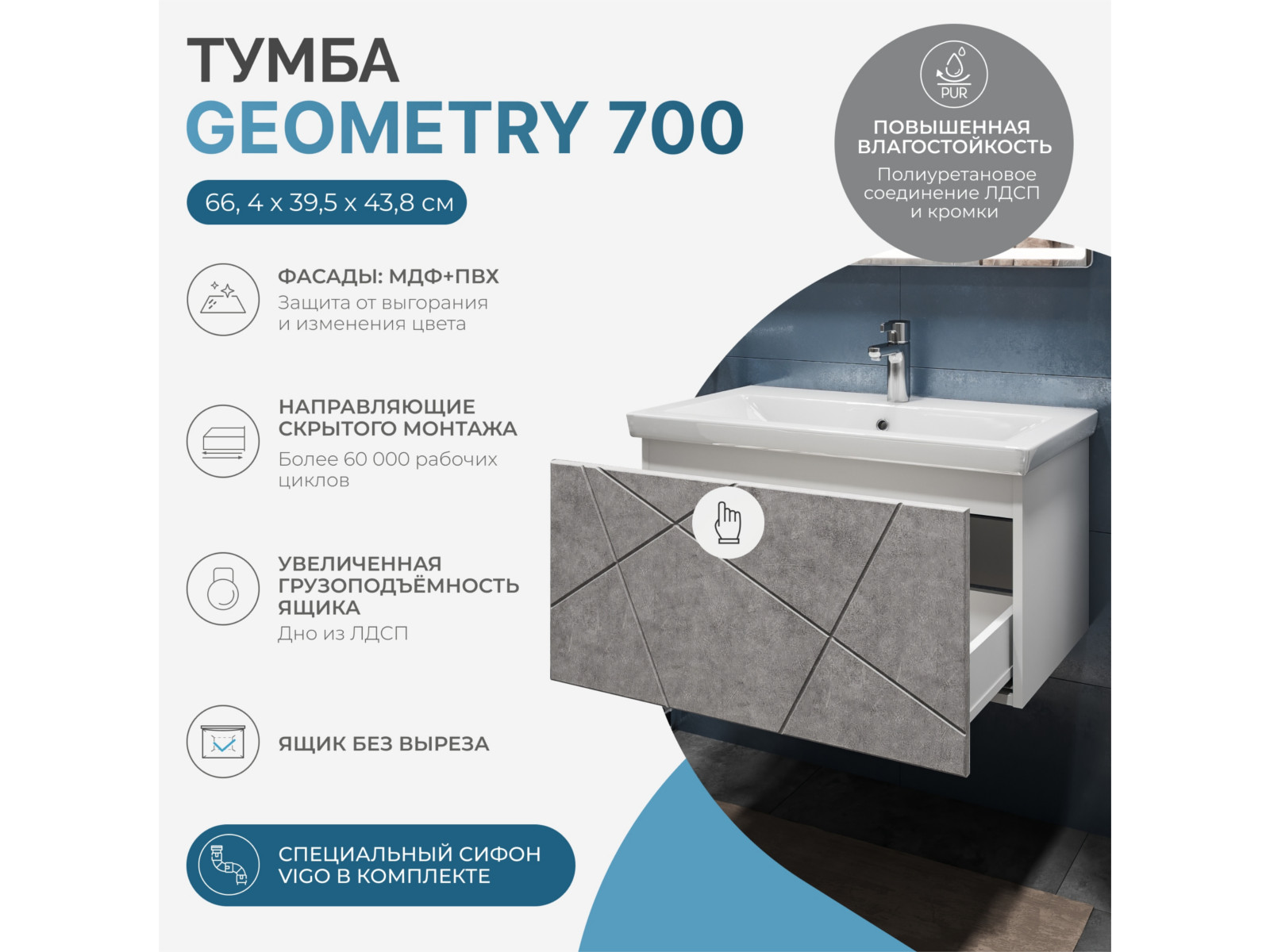 - Тумба Geometry 700-0-1 Como навесная бетон
