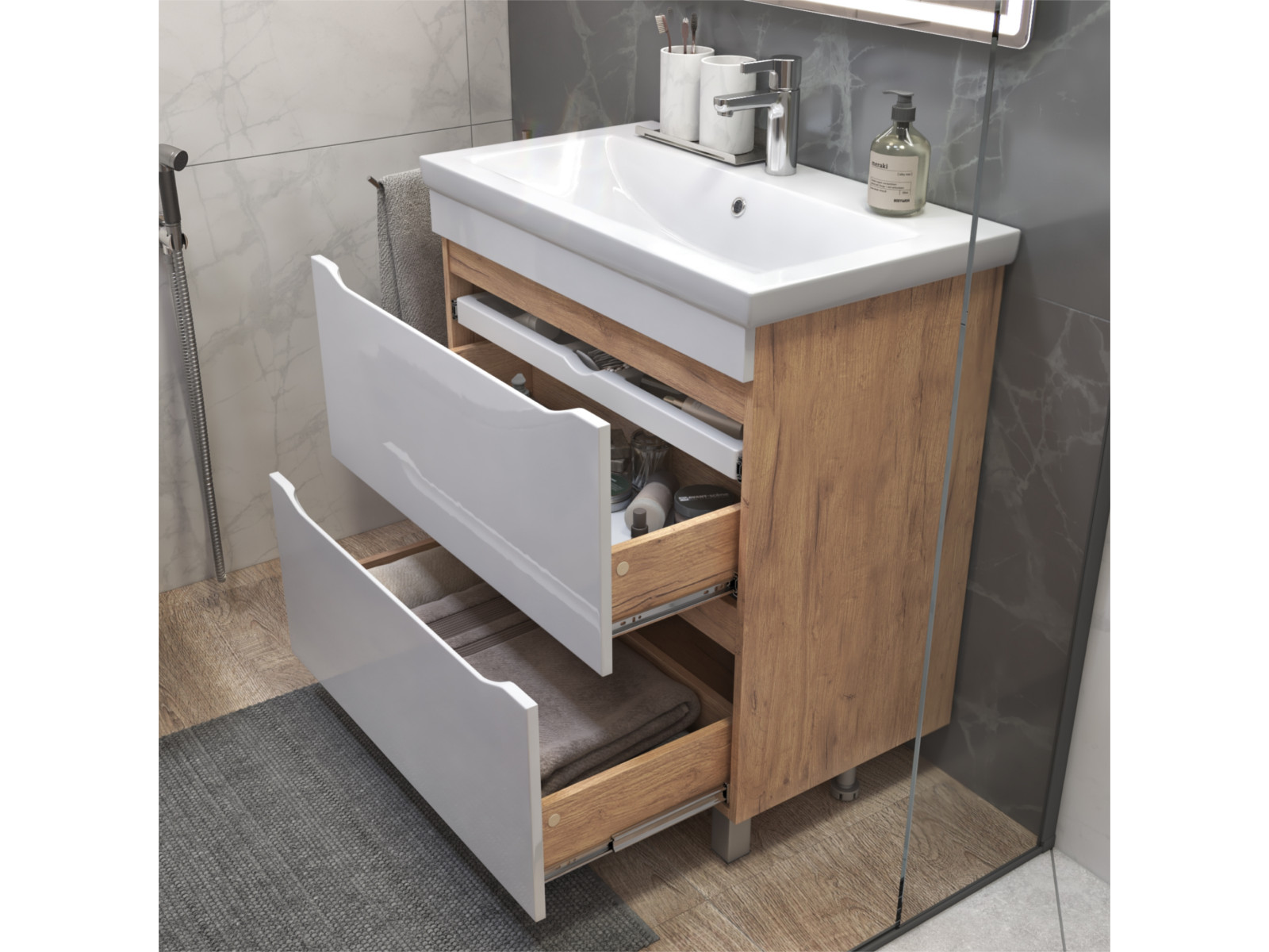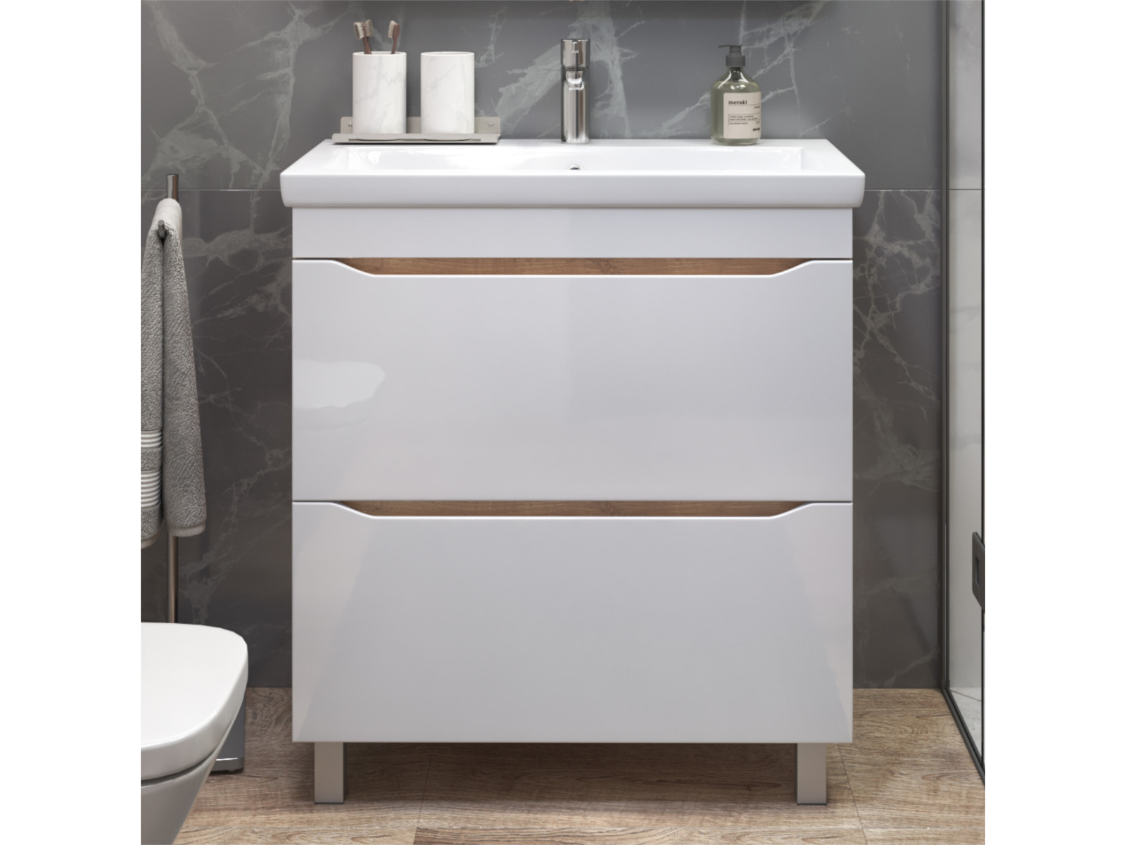 Размер тумбы с раковиной (ШxГxВ): 800x450x850 мм