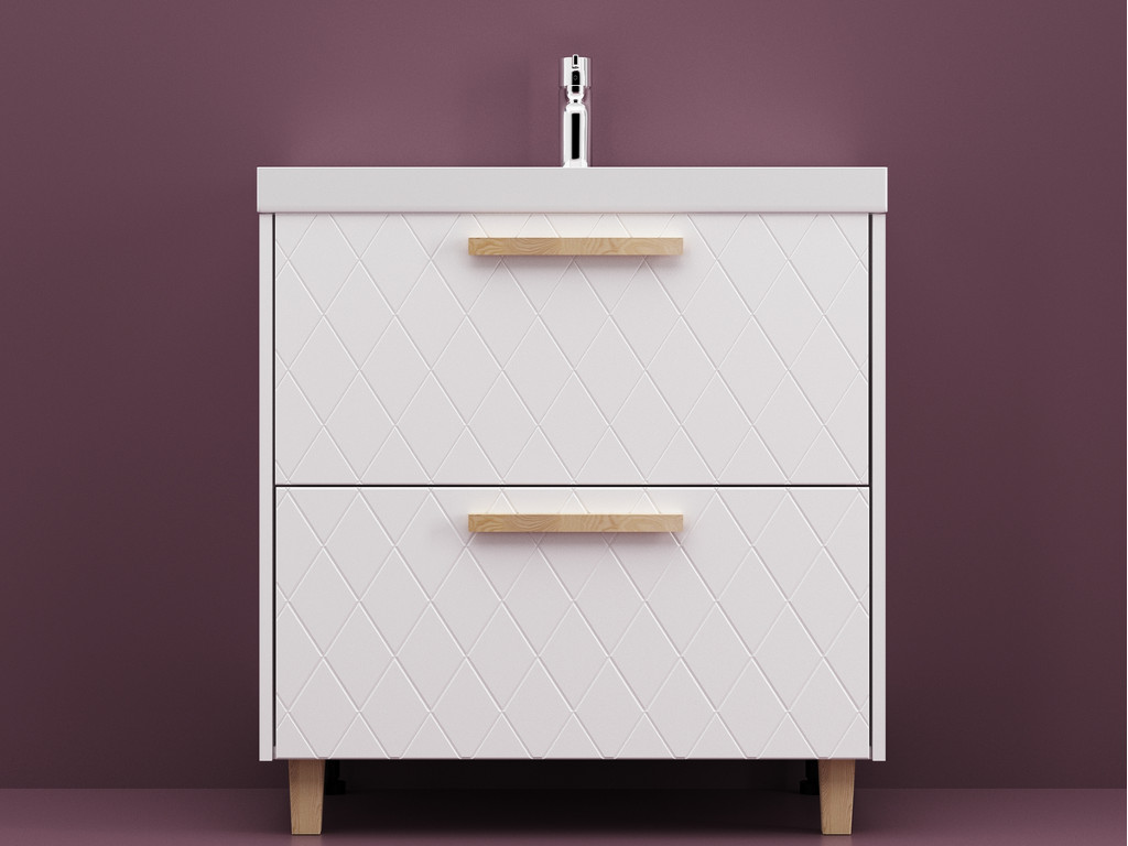 - Тумба Кристалл 60 напольная 2 ящика ручка дуб, раковина Океан 60 Суфле
