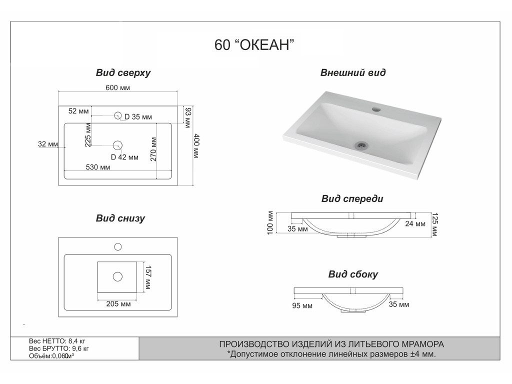 - Тумба Куба Риф 60 подвесная 2 ящика раковина Океан 60