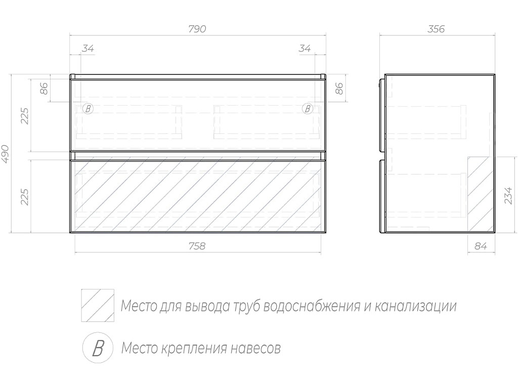 Тумба под раковину Mondi 800-0-2 Madera Classica Slim навесная акация темная