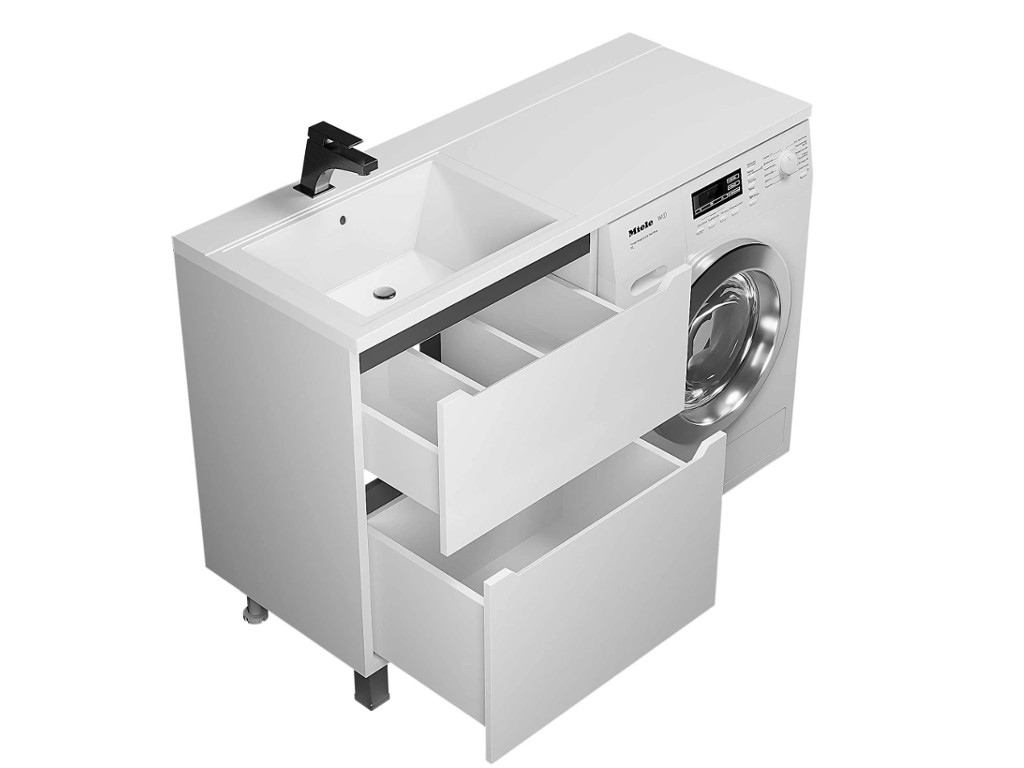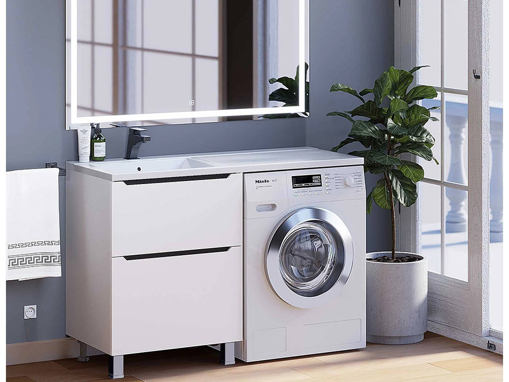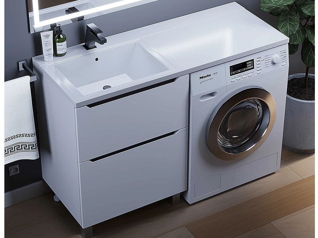 - Тумба под стиральную машину Uperwood Tanos 60 см, напольная, 2 ящика, белая/графит