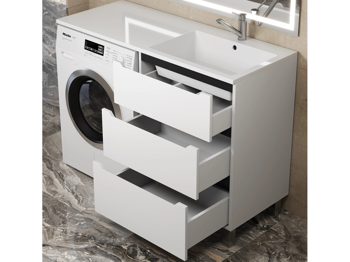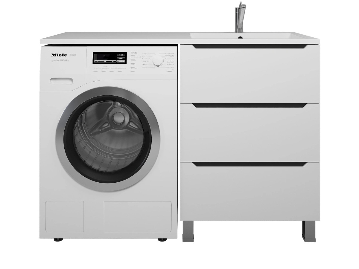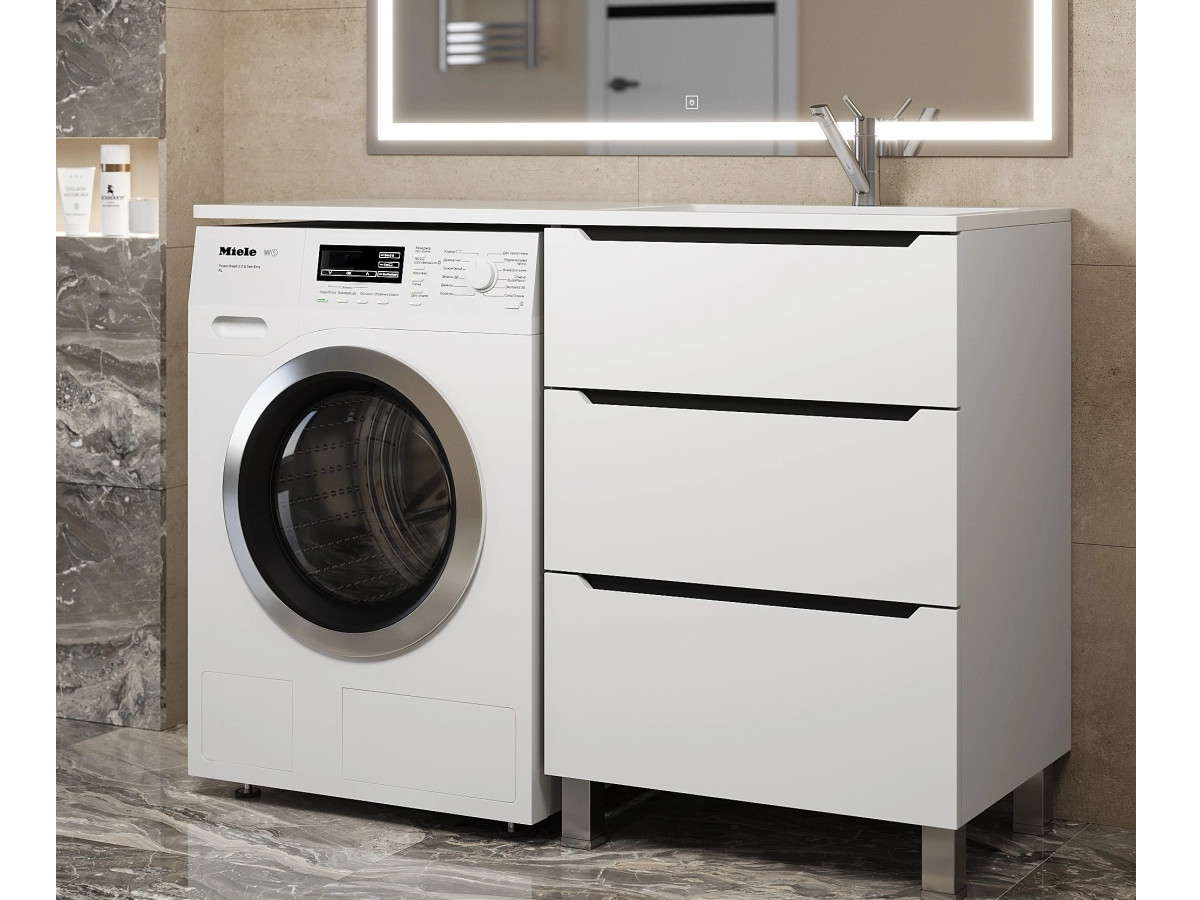 - Тумба под стиральную машину Uperwood Tanos 60 см, напольная, 3 ящика, белая/графит