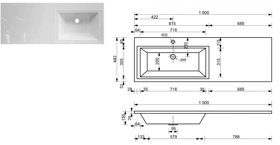 - Тумба с раковиной Dallas Luxe 1500 напольная 2 ящика правая
