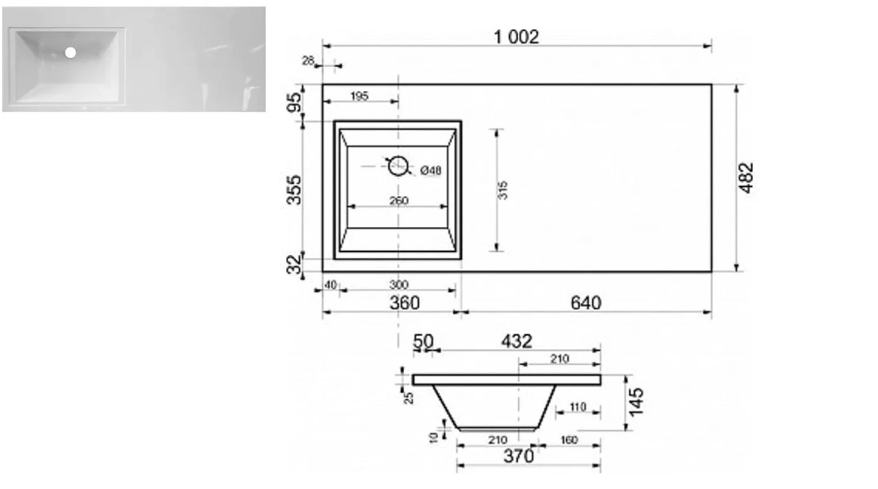 - Тумба с раковиной слева Dallas Luxe 1000 навесная 1 длинный ящик
