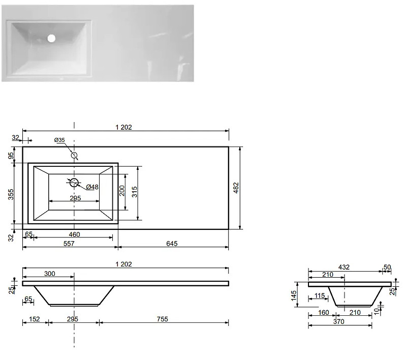 - Тумба с раковиной слева Dallas Luxe 1200 навесная 1 длинный ящик