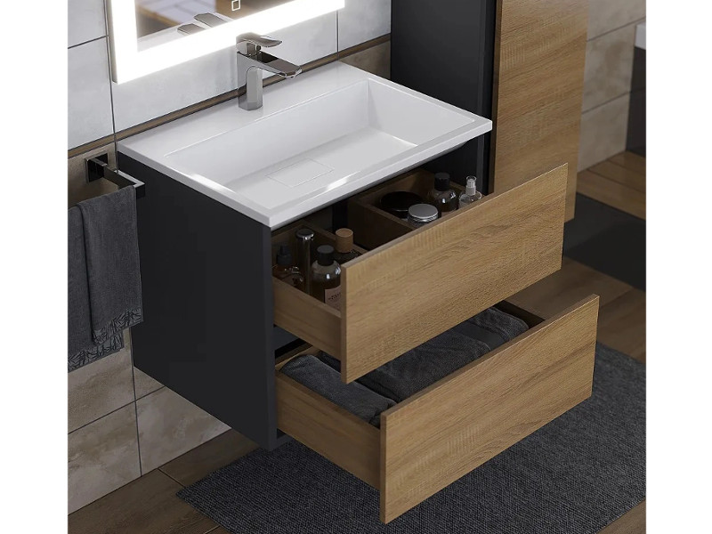 Тумба с раковиной Uperwood Barsa 60 см раковина белая-тумба черная/дуб сонома