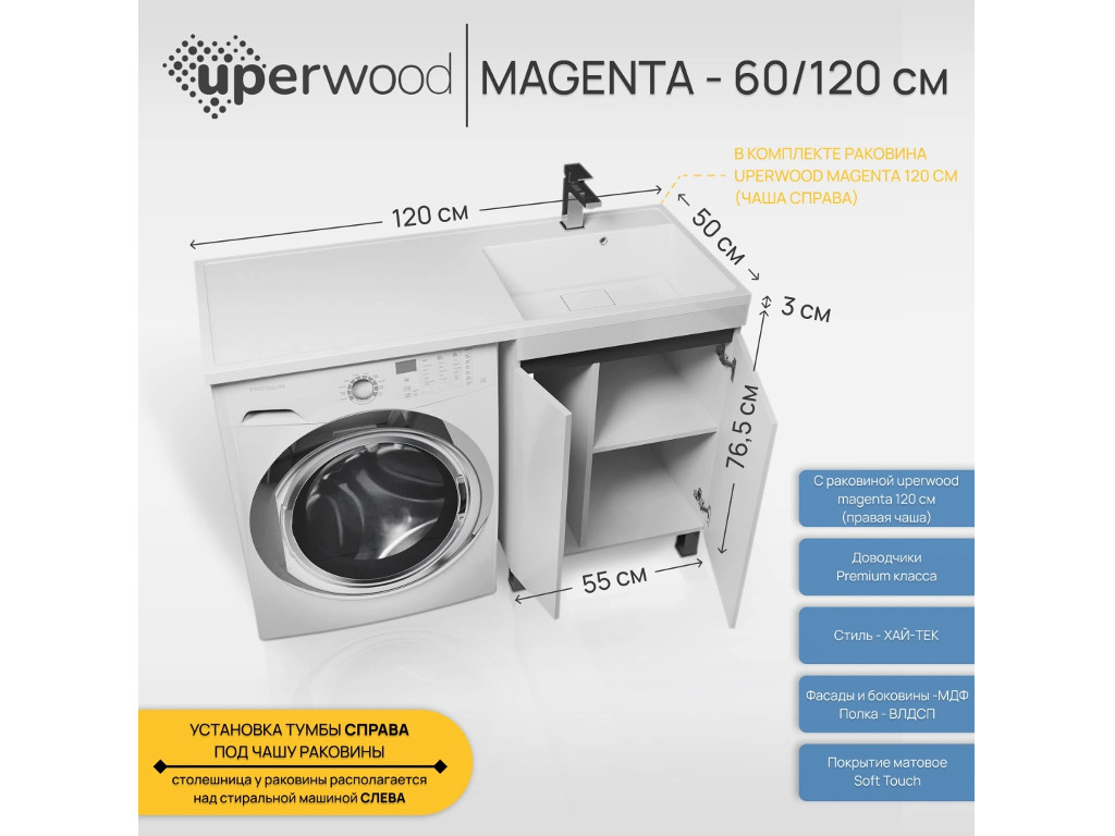 - Тумба с раковиной Uperwood Magenta 60-120 см напольная белая/графит с дверцами правая