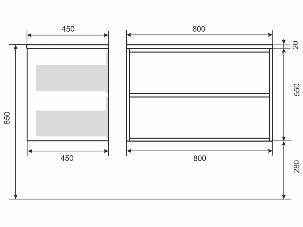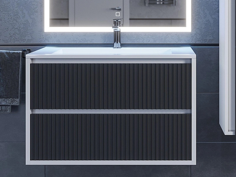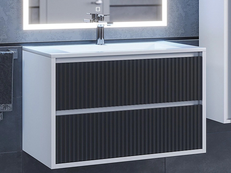 - Тумба с раковиной Uperwood Next Premium белая/графит 2 ящика 80 см