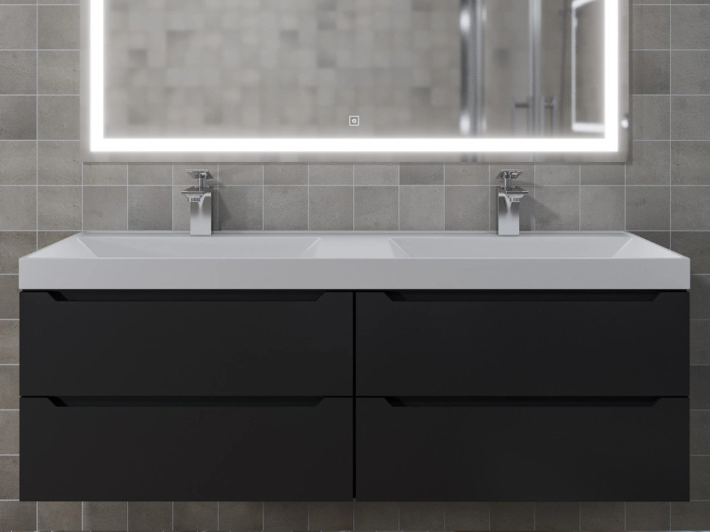 - Тумба с раковиной Uperwood Tanos 120 см подвесная двойная черная
