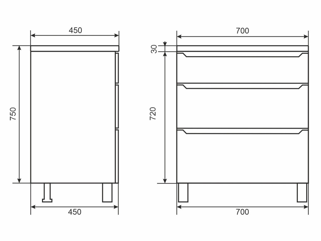- Тумба с раковиной Uperwood Tanos 3 ящика напольная 70 см черная