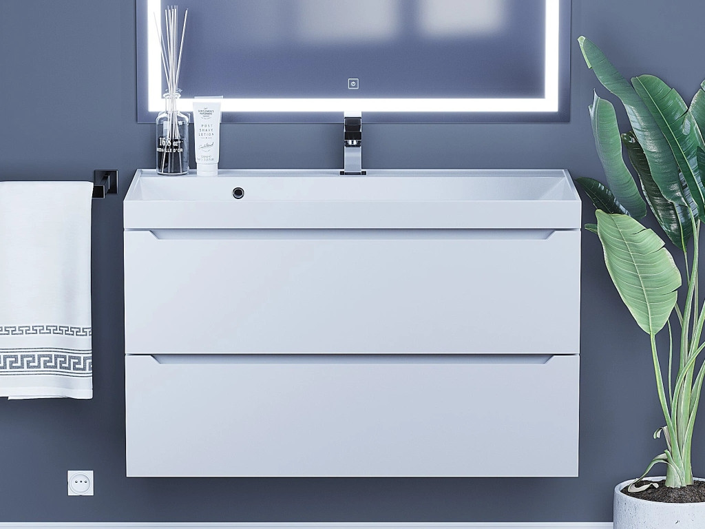 - Тумба с раковиной Uperwood Tanos матовая белая 90 см