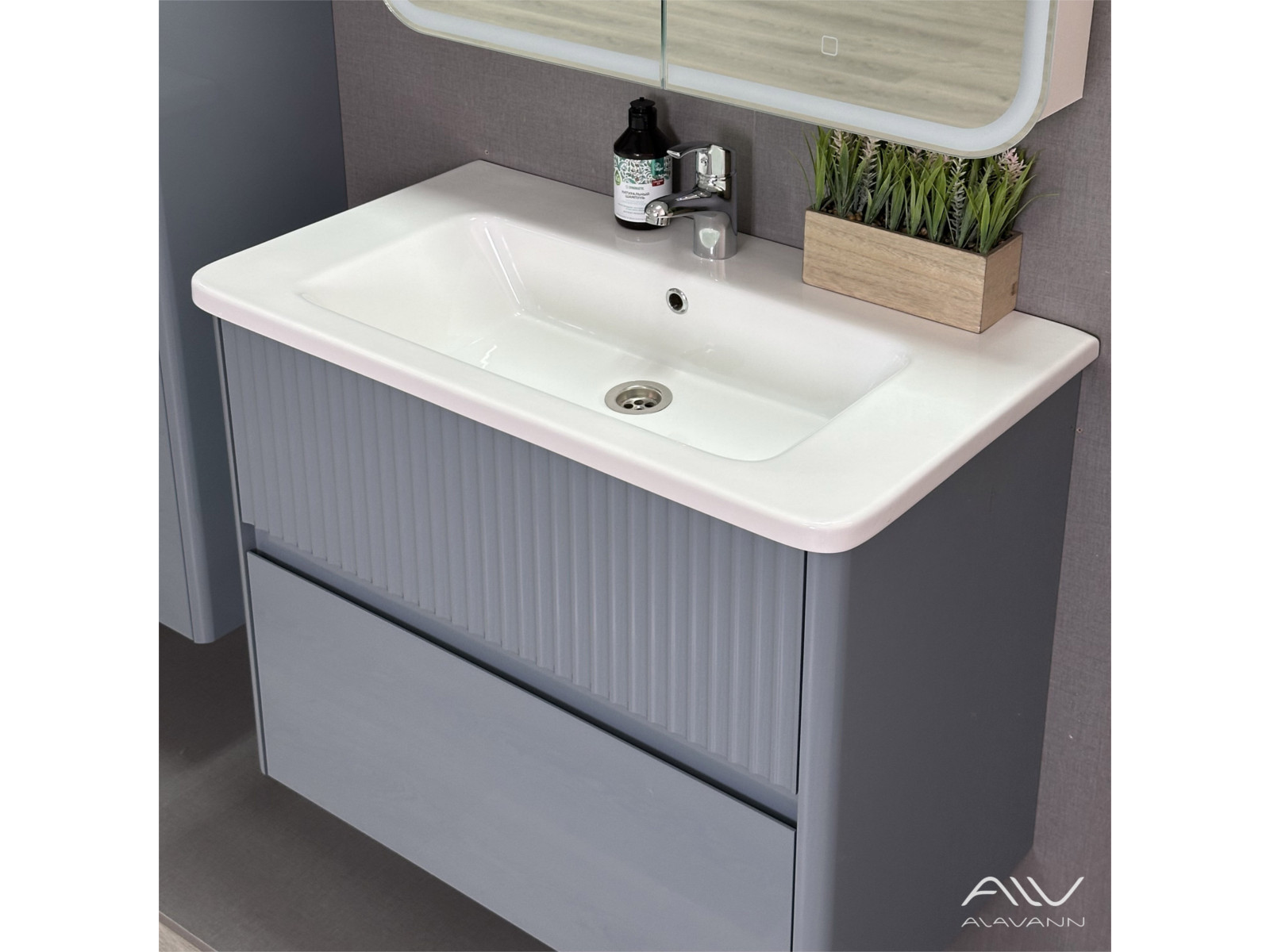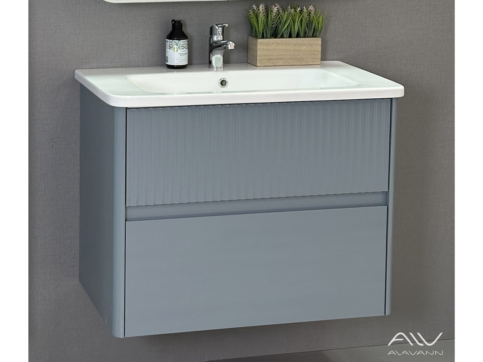 - Тумба с раковиной Wave 80 голубой деним