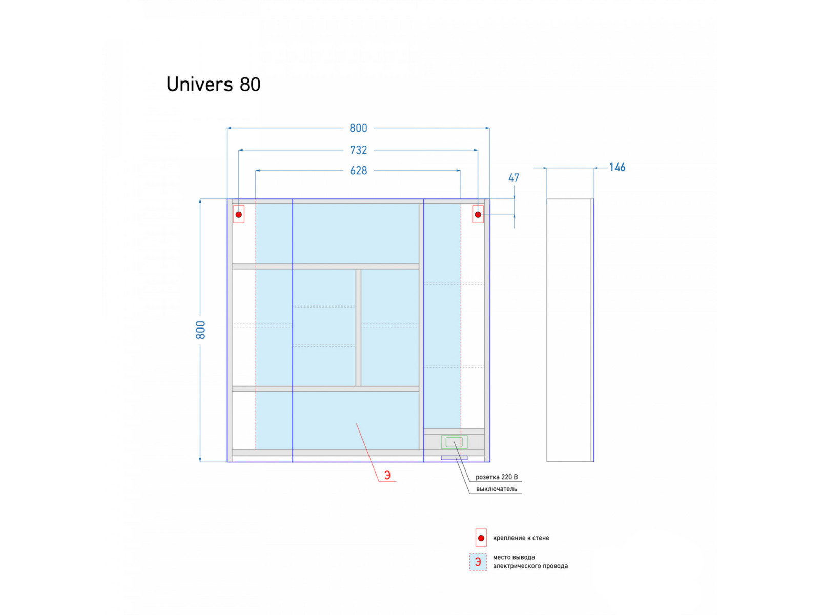 - Зеркальный шкаф Univers 80 белый