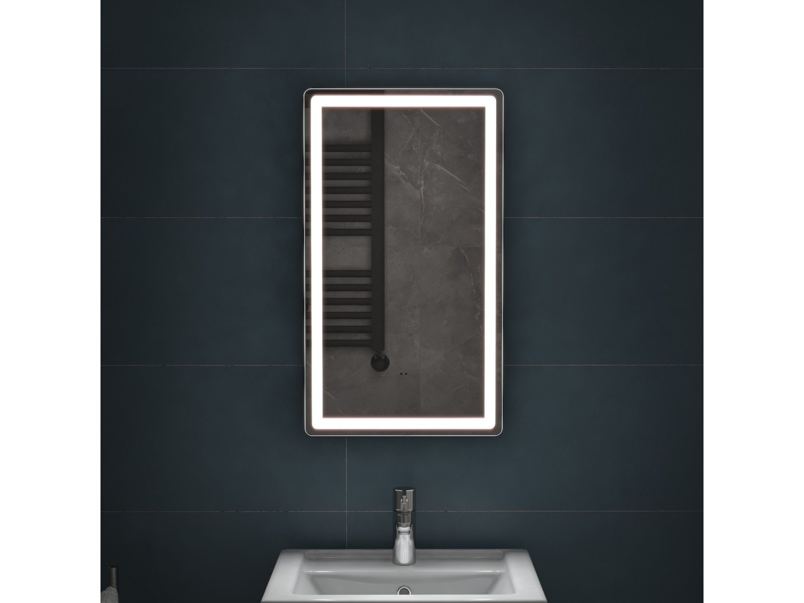 Подсветка фронтальная по периметру, с цветовой температурой 5000К – нейтральный белый, управление подсветкой бесконтактный выключатель «на взмах»