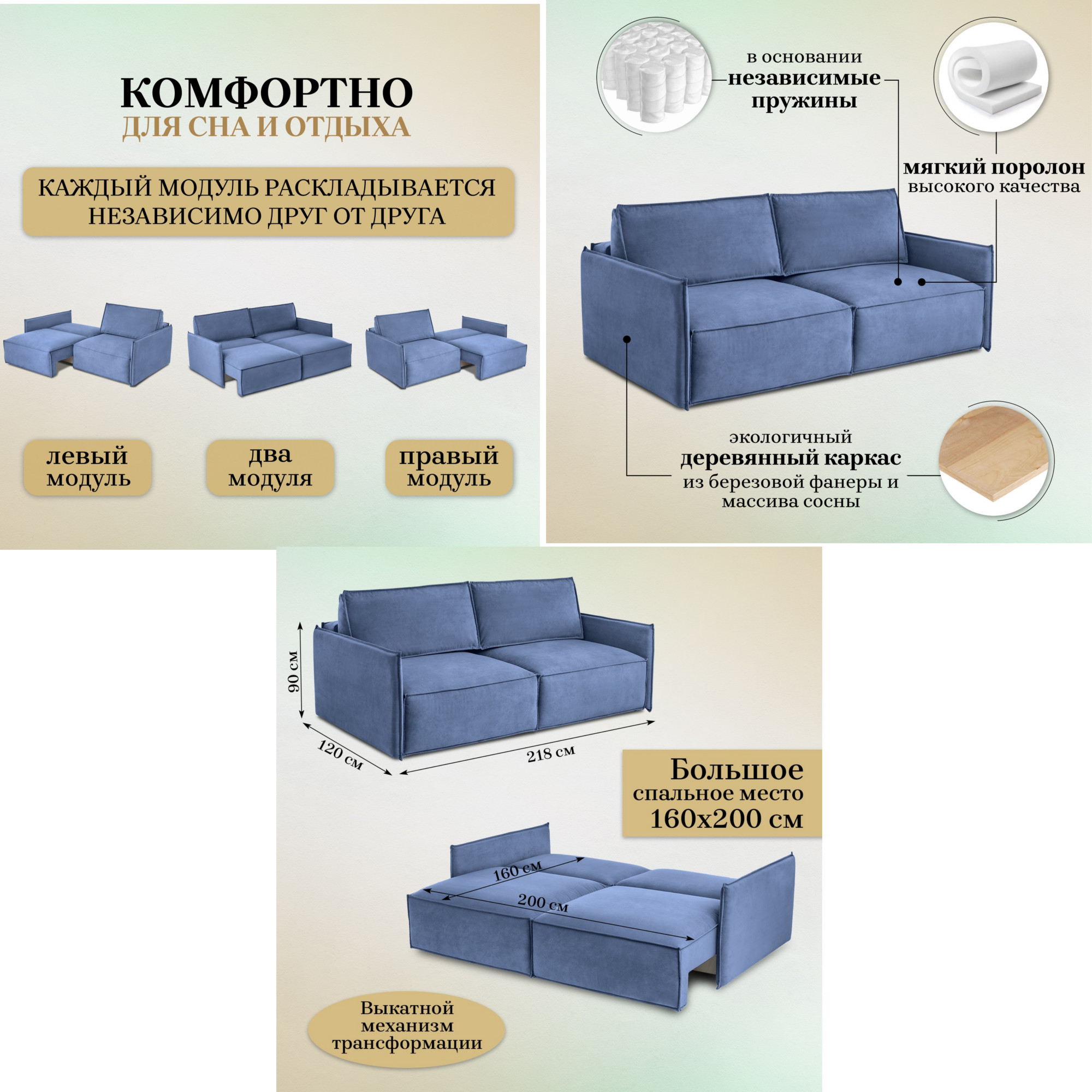- Спальное место: 1600х2000 мм