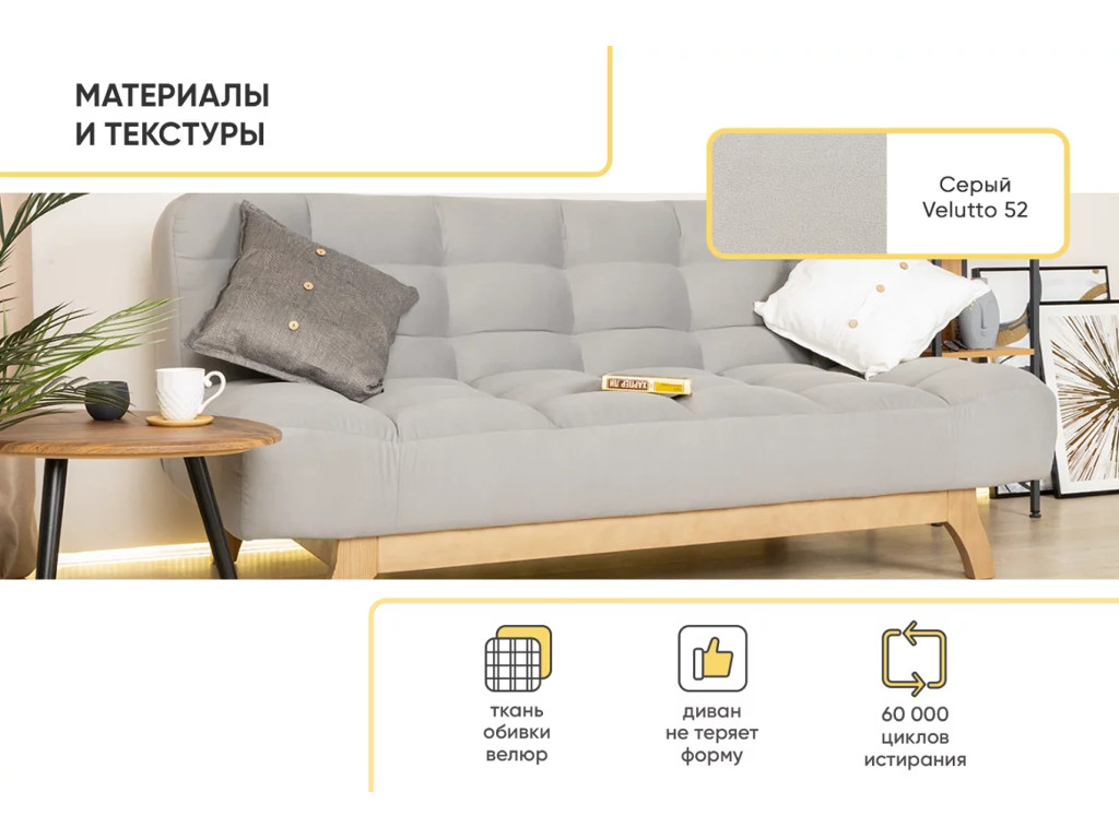 - Диван Алабуга Серый Velutto 52