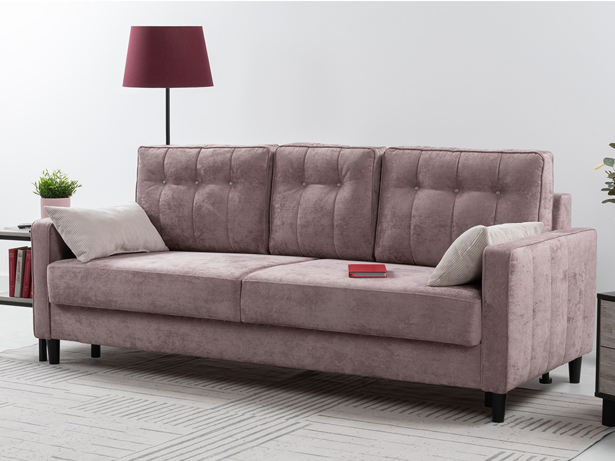 Подушки имеют трапециевидную форму, с утолщением к низу для комфорта посадки. Кант по всему периметру подушек, декоративные утяжки металлическими пуговицами, вертикальная стежка.