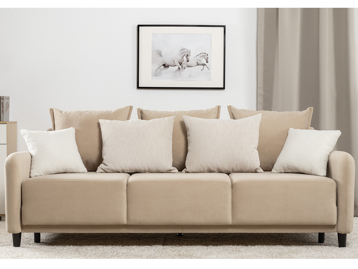 Декор: В комплекте 2 двусторонние декоративные подушки и 2 декоративные думки. Задняя спинка в ткани основы. Декоративные отделочные строчки по боковинам и сиденью