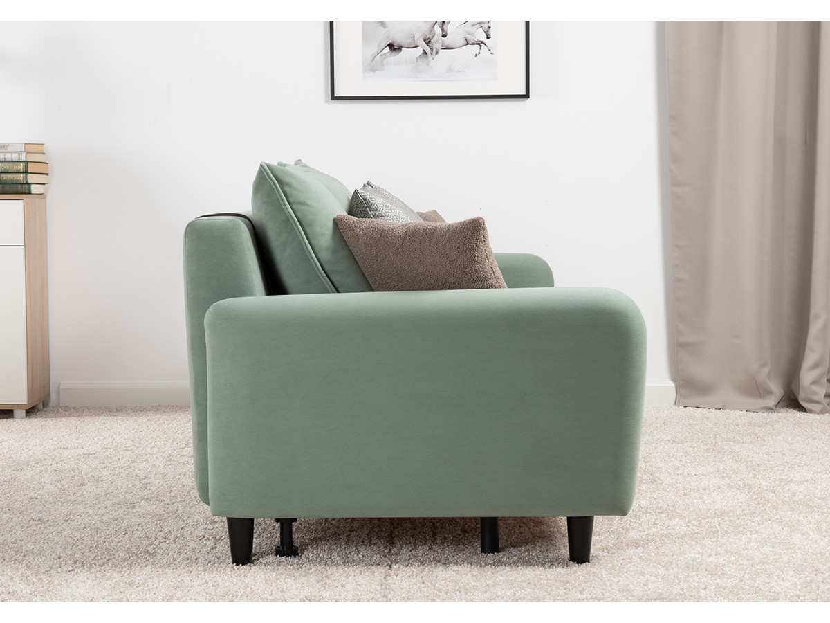 Декор: В комплекте 2 двусторонние декоративные подушки и 2 декоративные думки. Задняя спинка в ткани основы. Декоративные отделочные строчки по боковинам и сиденью