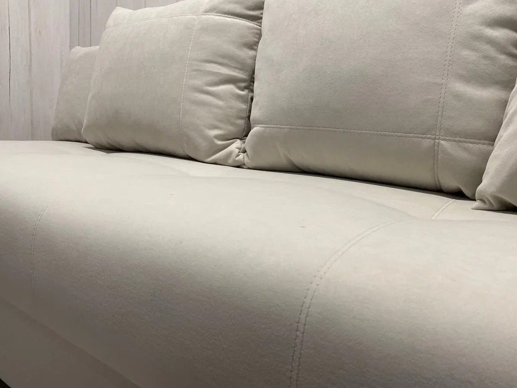 Декор: двойная строчка, утяжки. Две приспинные подушки и три декоративные в комплекте.
