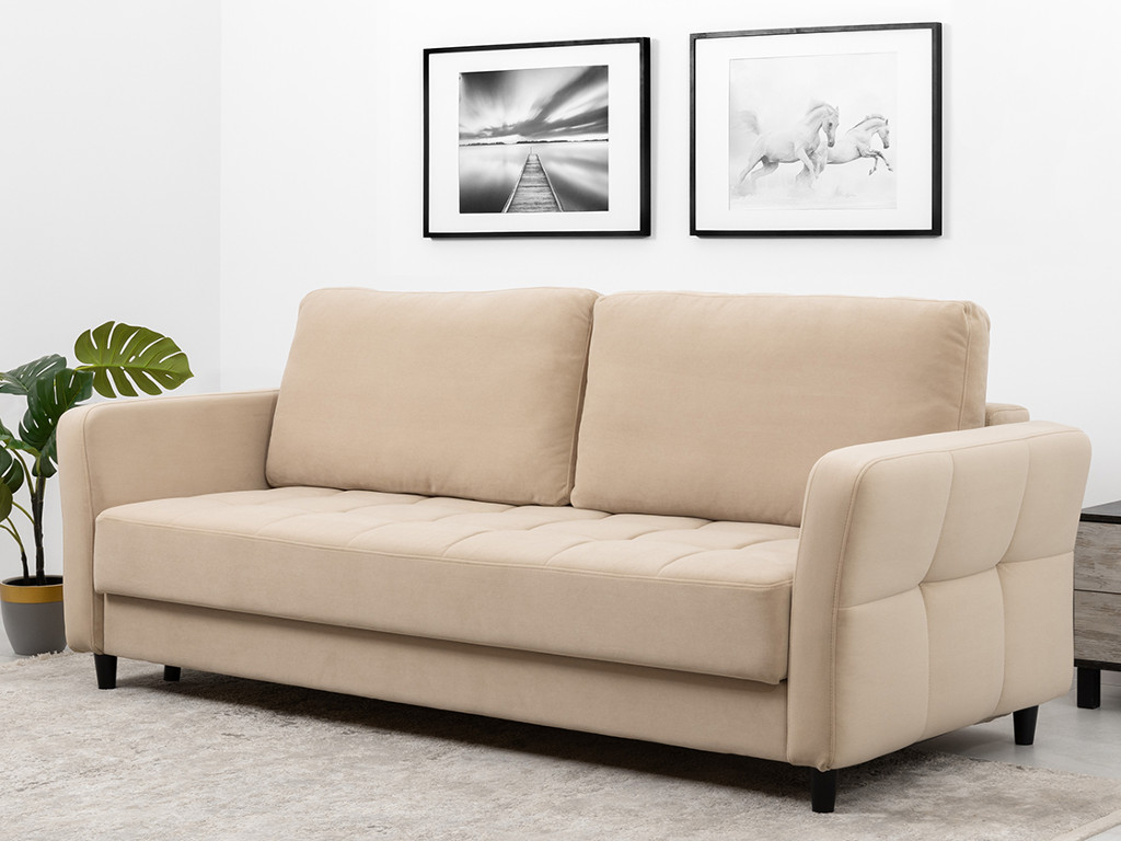 Ровная отстрочка по всему периметру сидения и стежка? создающая эффект пышности выделенных форм. Подлокотники прямые с изгибом в наружные стороны, с выраженной стежкой по лицевой стороне. Стежка на посадочной части дивана.