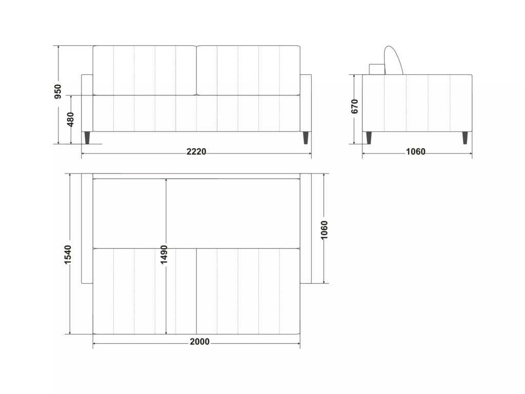 Размеры дивана (мм):  2220*1060*950