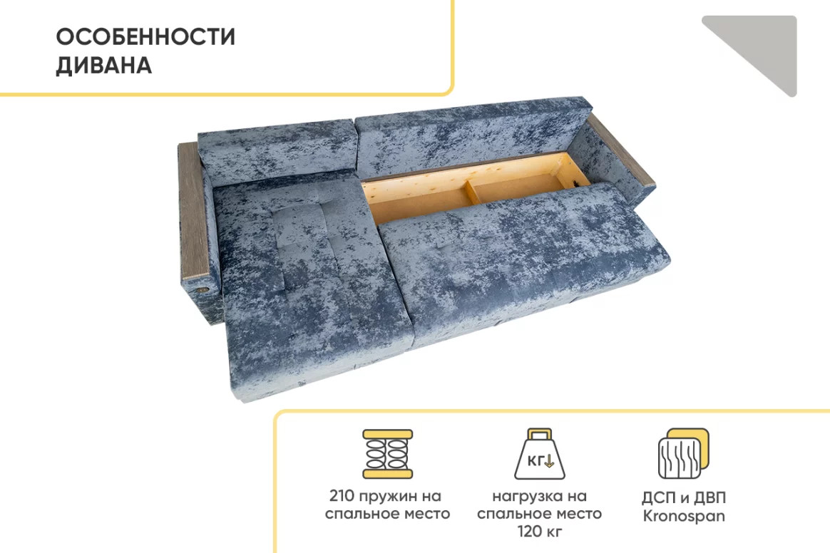 - Диван eгловой Тургояк c USB розеткой Темно-синий Ocean 978