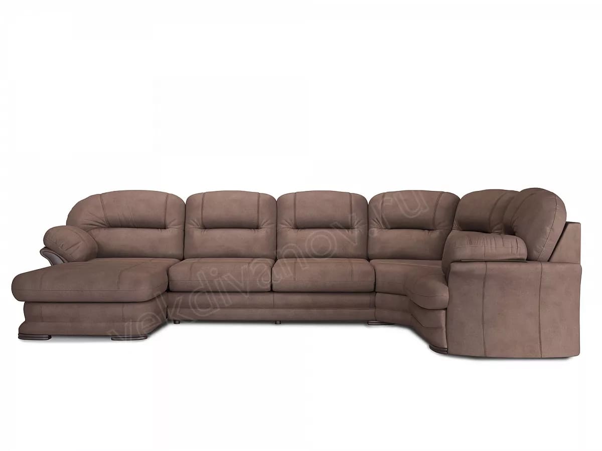 - Диван угловой большой П-образный Квин 6 без механизма Ultra Chocolate