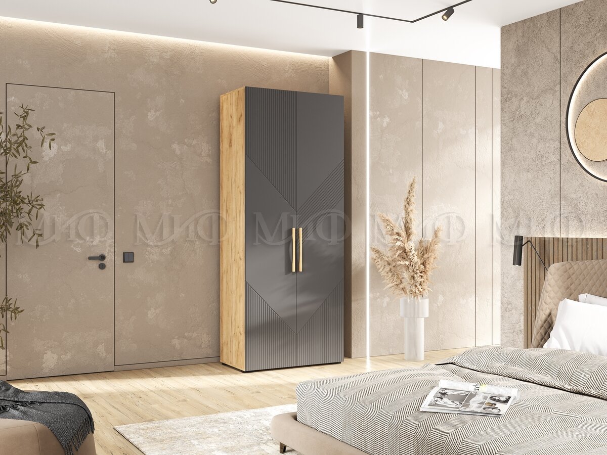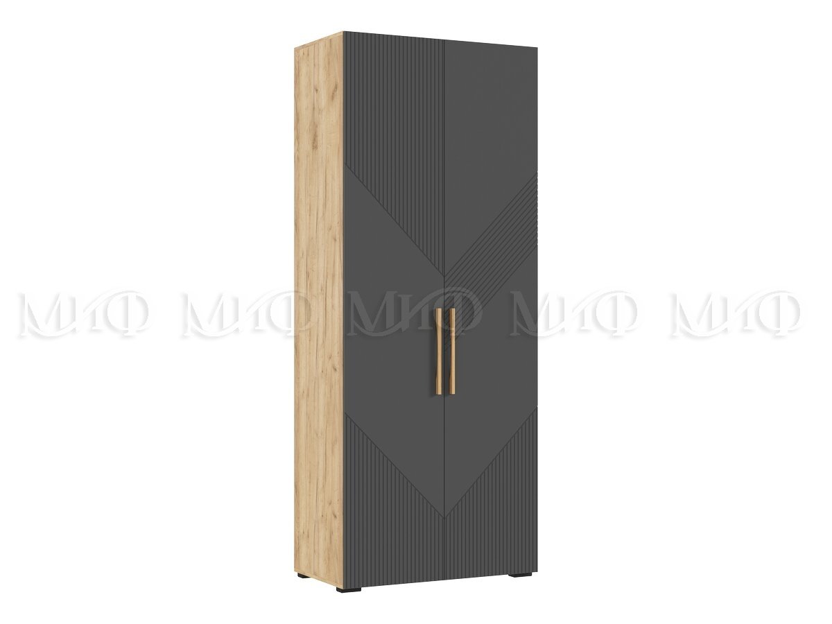 - Шкаф 2-х створчатый (900) Ирис Браш Графит, Дуб Крафт