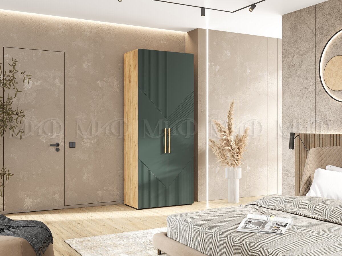 - Шкаф 2-х створчатый (900) Ирис Браш Мени Грин, Дуб Крафт