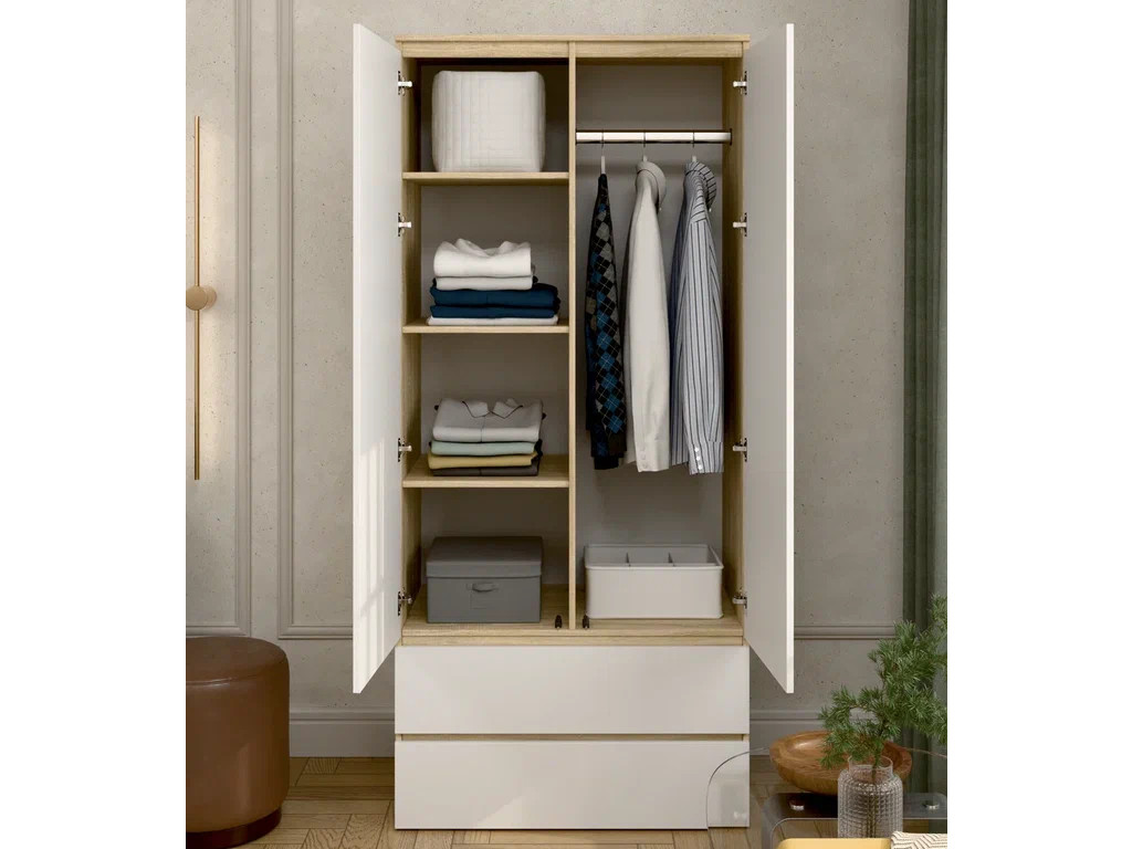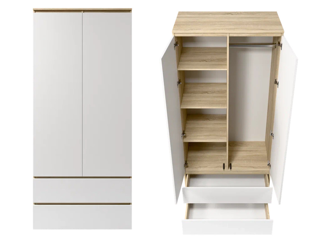 Шкаф 2-хстворчатый с 2-мя ящиками Прайм Сонома/Белый