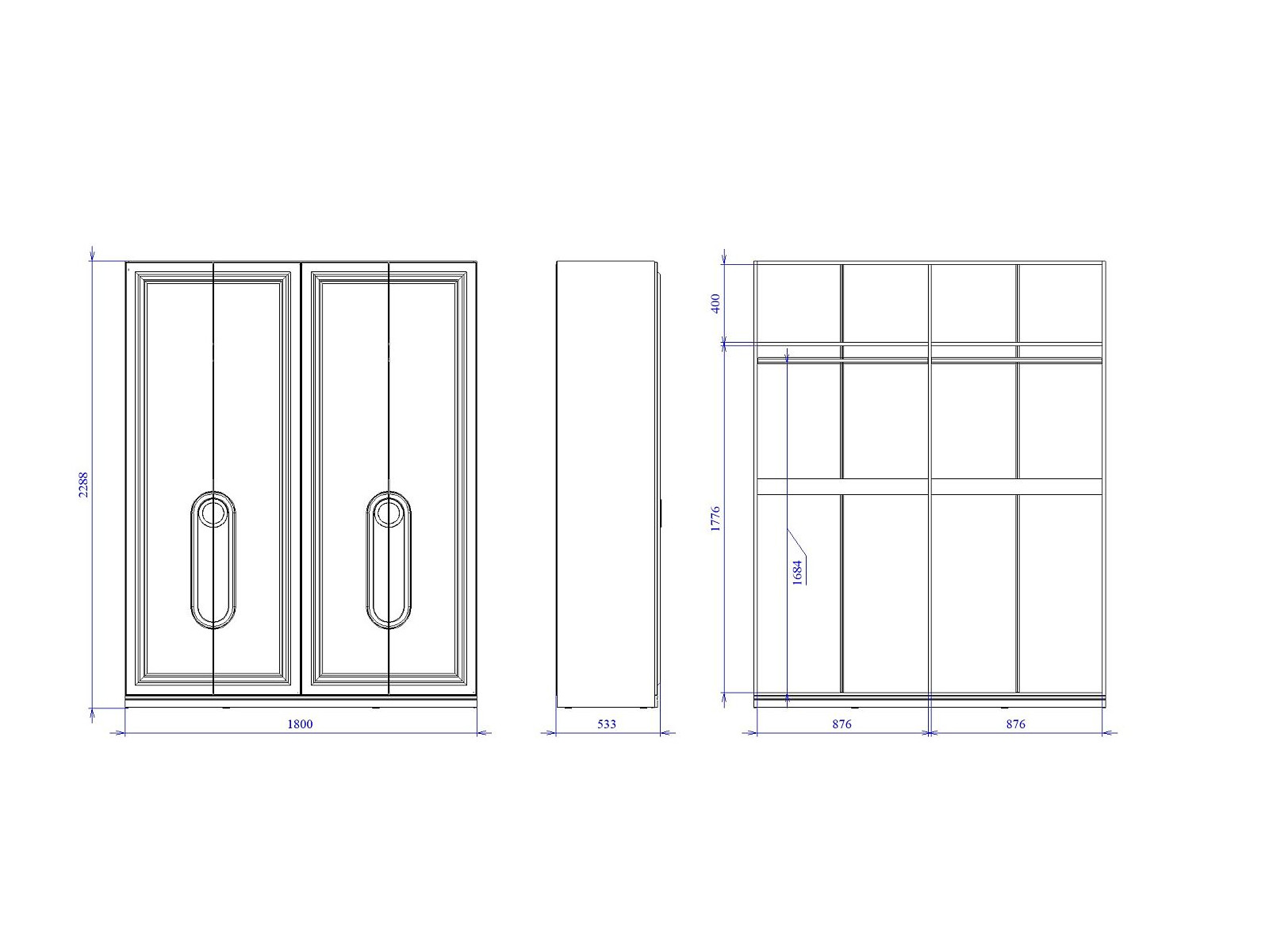 - Шкаф 4-дверный Палермо Дуб Каселла коричневый