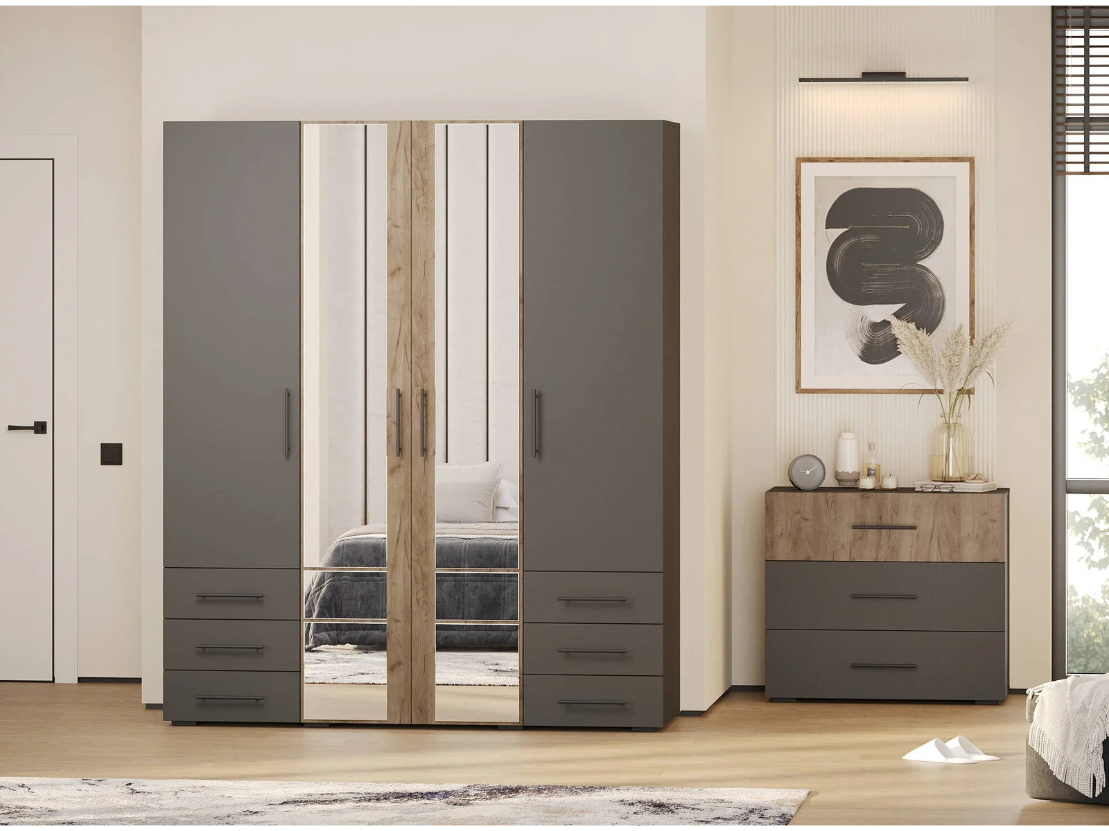 Шкаф 4-х дверный с шестью ящиками 4-75932