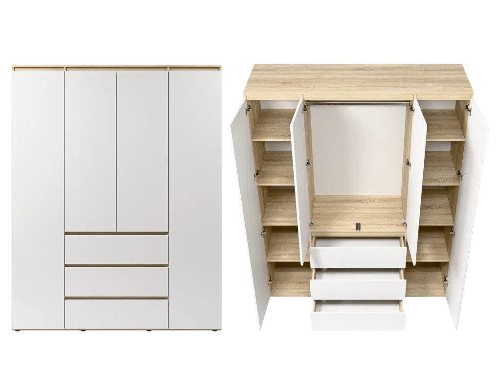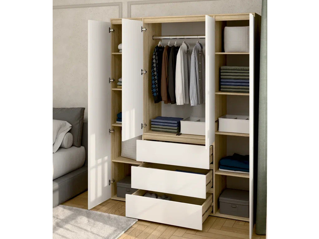 - Шкаф 4-хстворчатый с 3-мя ящиками Прайм сонома/белый