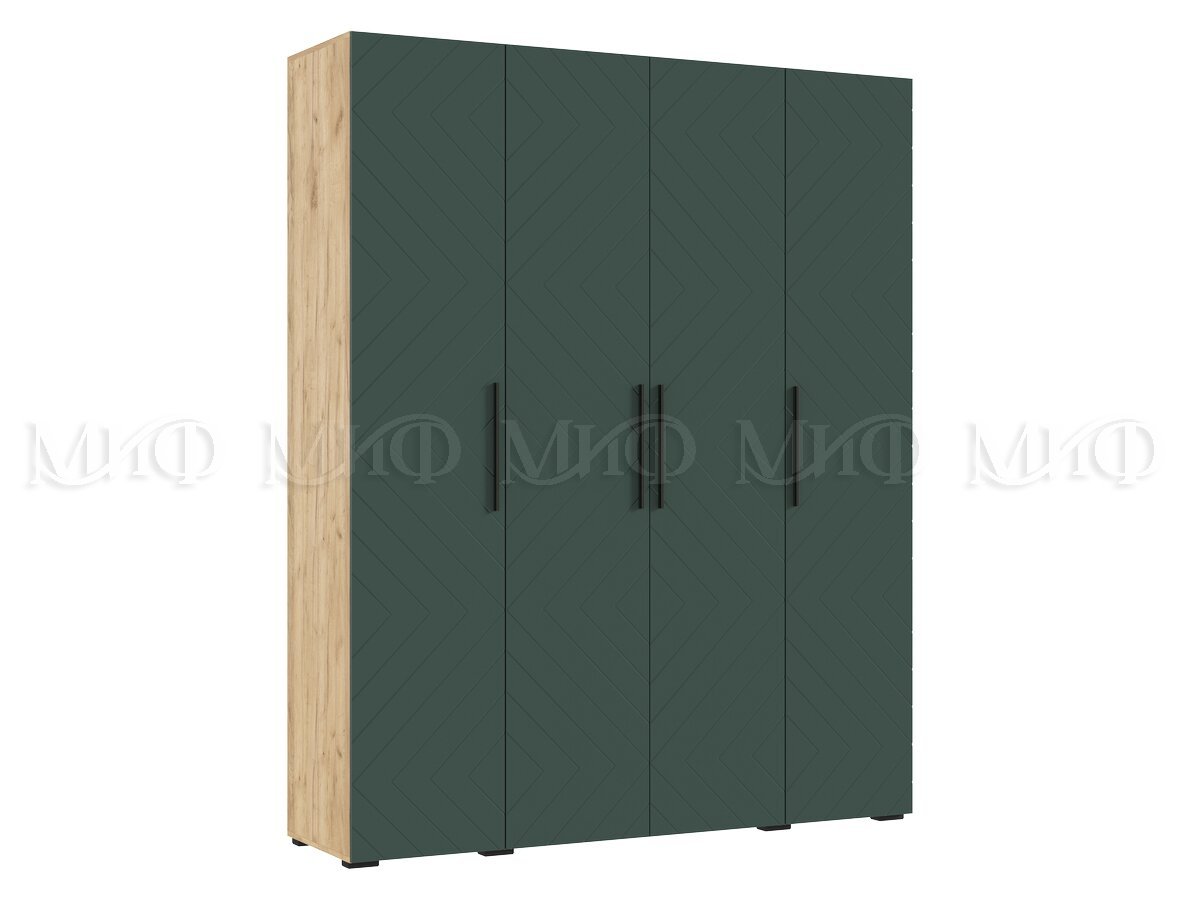 - Шкаф четырехстворчатый (1800) Флэш Браш Мени Грин, Дуб Крафт