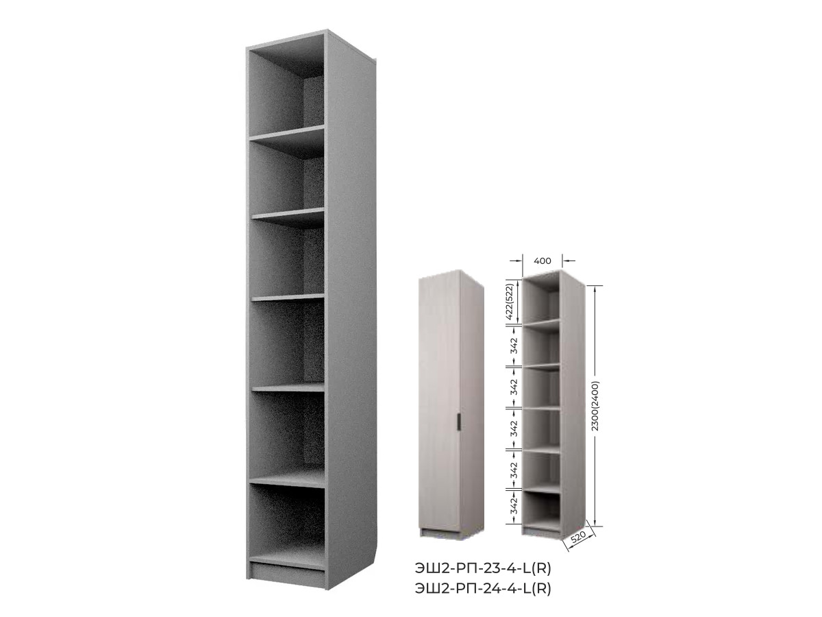 - Шкаф для одежды с полками Экон ЭШ2-РП-24-4-R с зеркалом