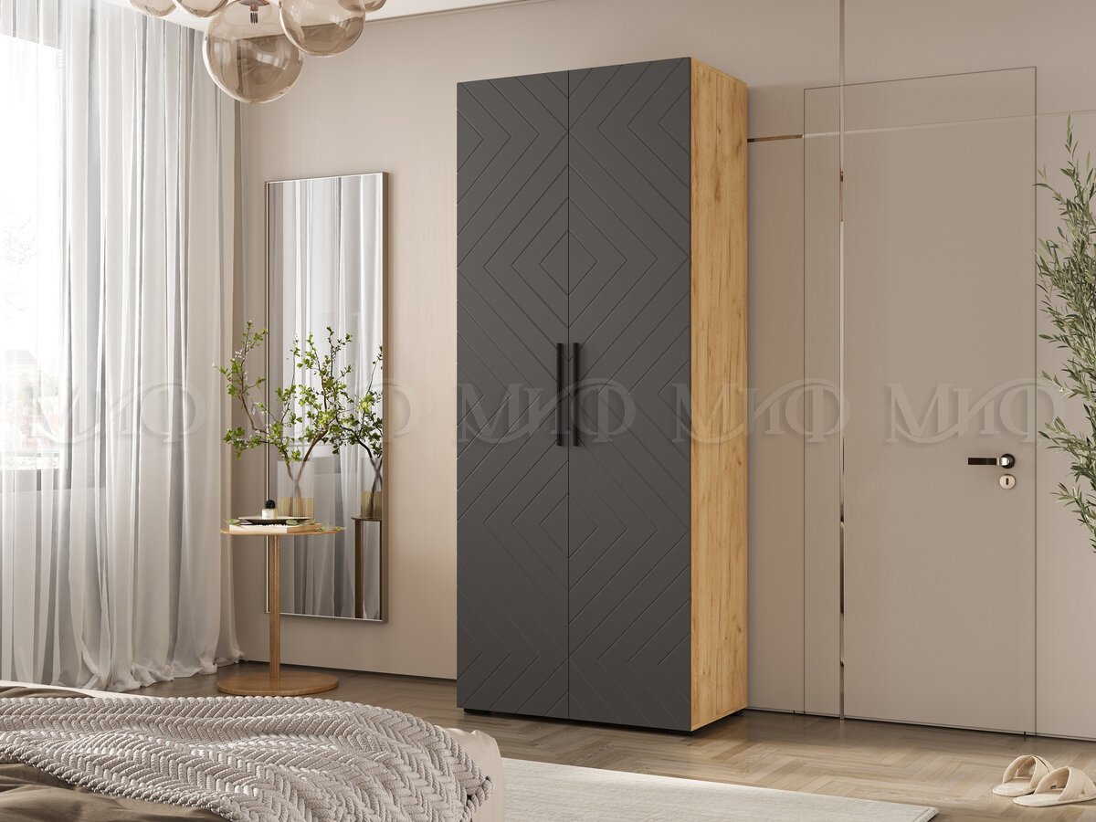 Шкаф двухстворчатый (900) Флэш Браш Графит, Дуб Крафт