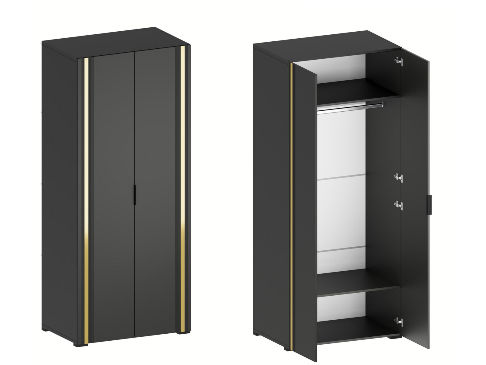 - Фасады из МДФ с оригинальной фрезеровкой покрыты суперматовой пленкой с эффектом Soft Touch в цветах Графит и Milk.