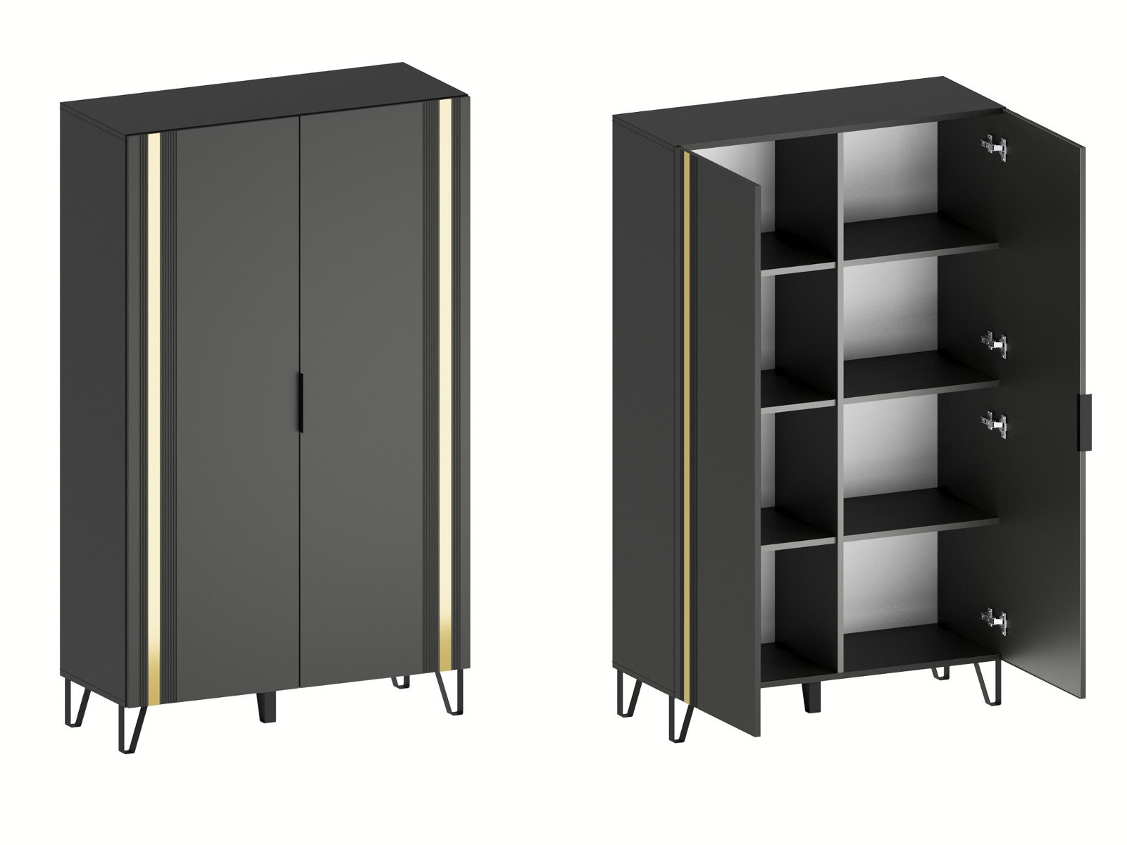 - Фасады из МДФ с оригинальной фрезеровкой покрыты суперматовой пленкой с эффектом Soft Touch в цветах Графит и Milk.