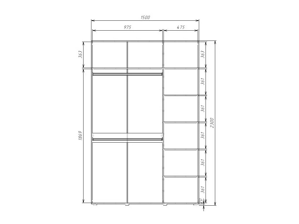 - Шкаф Гранд ГШК/2-23-15-111 (двери тип 1) с тремя зеркалами